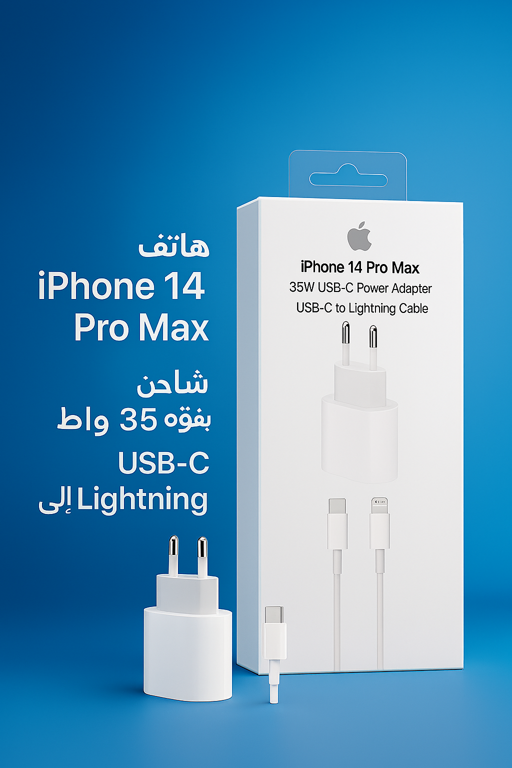 منتج يليق بك… لأنك لا تختار إلا الأفضل. اكتشف مجموعة الشحن الأصلية لهاتف iPhone – شاحن USB-C بقوة 35 واط وكابل Lightning عالي الجودة. أداء فائق، تصميم أنيق، وتجربة شحن لا تُضاهى. اطلبه الآن وارتقِ بتجربتك التقنية.